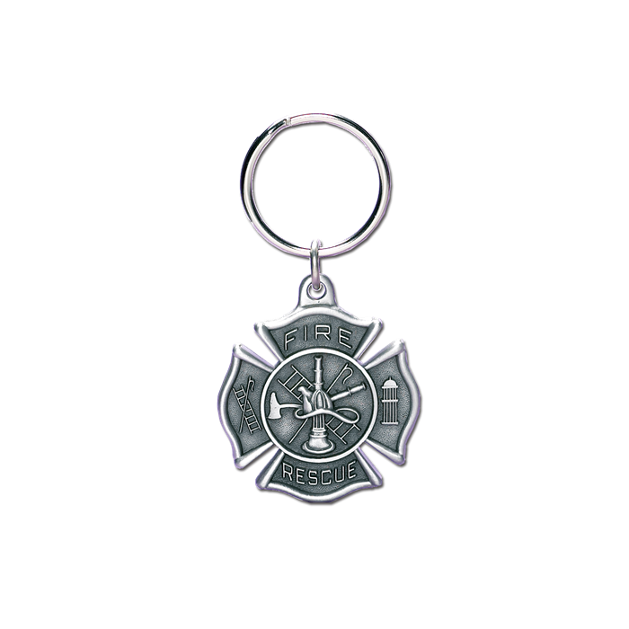 This key ring makes an ideal gift for the fireman in your life. This Maltese Cross features the words Fire Rescue with a fire scramble in the center.