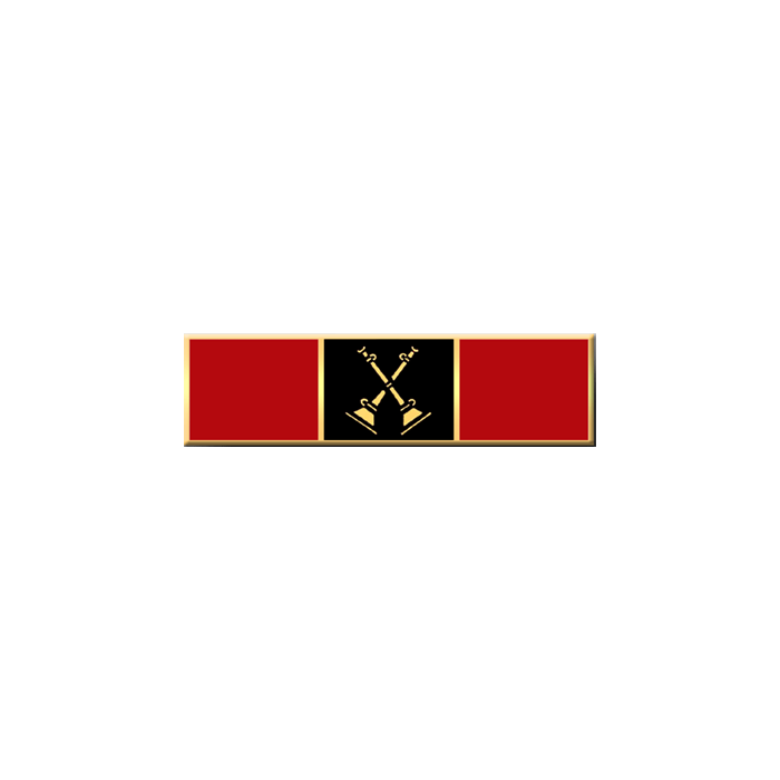 Impressive three section commendation bar with a two crossed fire horns in the center section. Recognizing the Battalion Chief in your department. The symbol(s) are built into the die and cannot be changed.