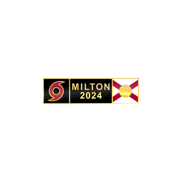 Unique commendation bar created for the first responders of Milton Hurricane. The bar features the hurricane symbol in left section, Milton 2024 in the center and the Florida flag in right section.