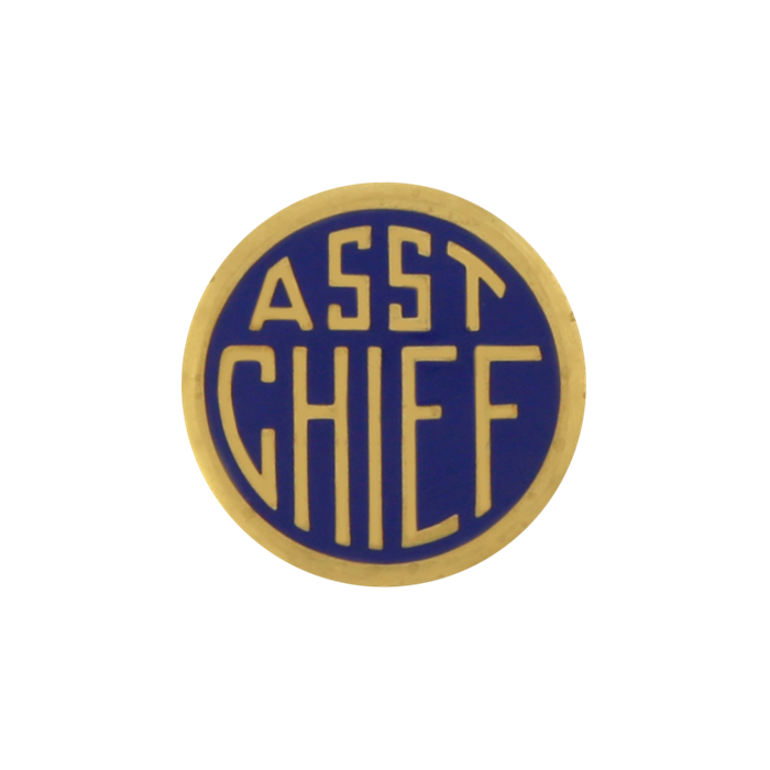 Simple one color seal featuring the word Assistant Chief on the enamel background color or your choice. This handsome seal can be used as a lapel pin, or use it as a stunning center seal on your badge.