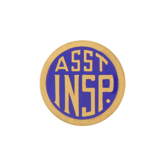 Simple one color seal featuring the word Assistant Inspector (Asst Insp.) on the enamel background color or your choice. This handsome seal can be used as a lapel pin, or use it as a stunning center seal on your badge.