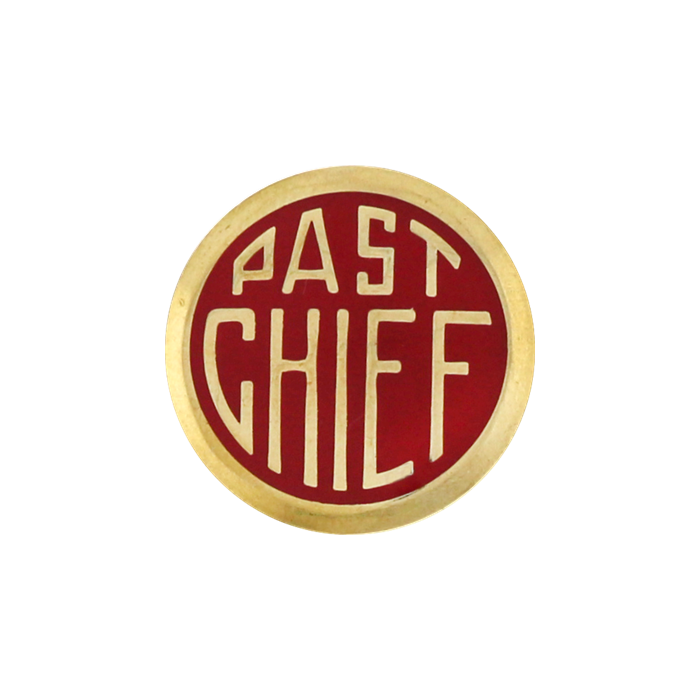 Simple one color seal featuring the word Past Chief on the enamel background color or your choice. This handsome seal can be used as a lapel pin, or use it as a stunning center seal on your badge.