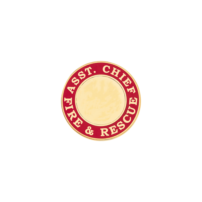 This bold cap badge features the words ASST. CHIEF FIRE & RESCUE with your choice of enamel coloring and room for an applied 15/16" seal.