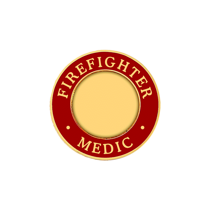 This bold cap badge features the words FIREFIGHTER MEDIC with your choice of enamel coloring around the rim and room for an applied 15/16" center seal too!