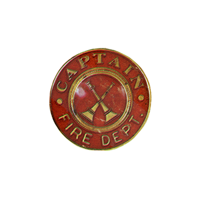 This bold cap badge features the words CAPTAIN FIRE DEPT. around the rim and takes the enamel color of your choice. Further customize this badge with a 15/16"center seal!