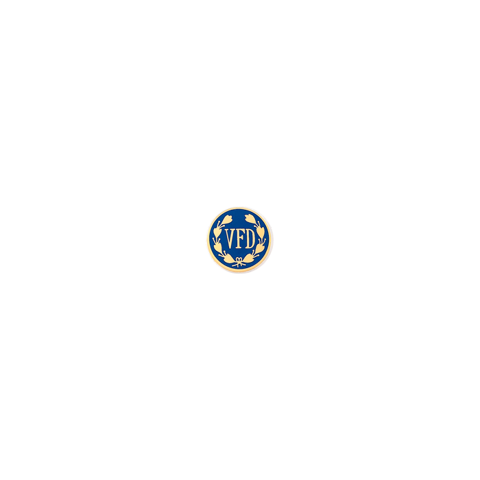 This volunteer fire department, VFD, seal features a decorative border and is a versatile piece that can be used as a lapel pin, or use it as a stunning center seal on your badge. It comes in the enamel color of your choice. Also available as 15/16" style A3647. Minimum order quantity is 2.