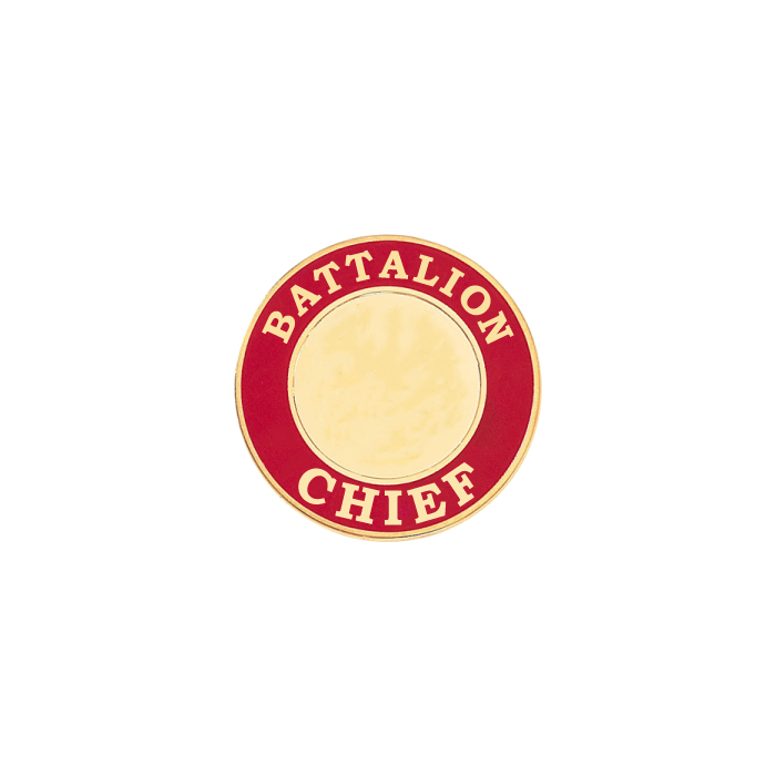 This bold cap badge features the words BATTALION CHIEF around the rim which takes the enamel color of your choice. Further customize this badge with a 15/16"center seal!