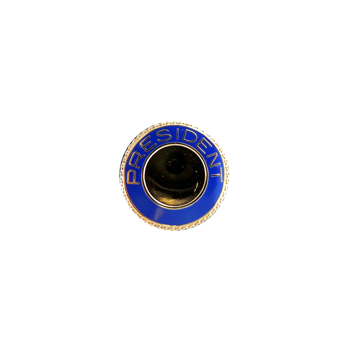 This handsome fire seal with the word President around the edge is a versatile piece that can be used as a lapel pin, or use it as a stunning center seal on your badge. Customize the unique piece further by adding the color of your choice around the rim and a ½” seal to the center of the disc.