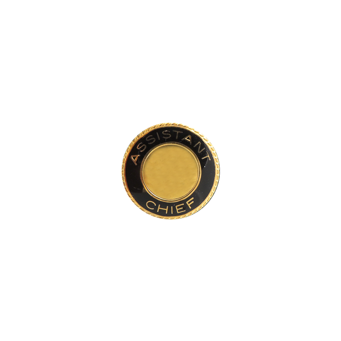 This handsome fire seal with the words Assistant Chief around the edge is a versatile piece that can be used as a lapel pin, or use it as a stunning center seal on your badge. Customize the unique piece further by adding the color of your choice around the rim and a ½” seal to the center of the disc.