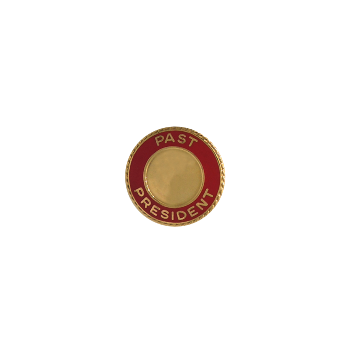 This handsome fire seal with the words Past President around the rim is a versatile piece that can be used as a lapel pin, or use it as a stunning center seal on your badge. Customize the unique piece further by adding the color of your choice around the rim and a ½” seal to the center of the disc.