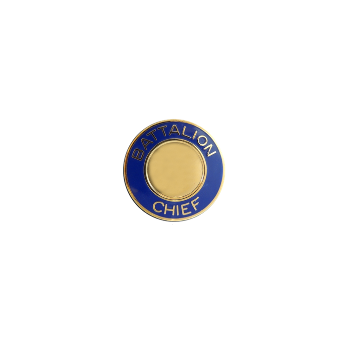 This handsome fire seal with the words Battalion Chief around the edge is a versatile piece that can be used as a lapel pin, or use it as a stunning center seal on your badge. Customize the unique piece further by adding the color of your choice around the rim and a ½” seal to the center of the disc.