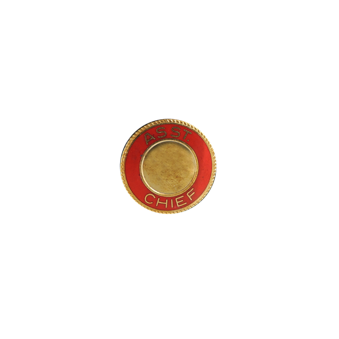 This handsome fire seal with the words Asst. Chief around the edge is a versatile piece that can be used as a lapel pin, or use it as a stunning center seal on your badge. Customize the unique piece further by adding the color of your choice around the rim and a ½” seal to the center of the disc.