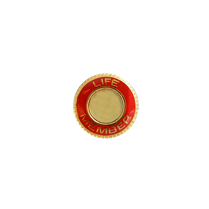 This handsome fire seal with the words Life Member around the rim is a versatile piece that can be used as a lapel pin, or use it as a stunning center seal on your badge. Customize the unique piece further by adding the color of your choice around the rim and a ½” seal to the center of the disc.
