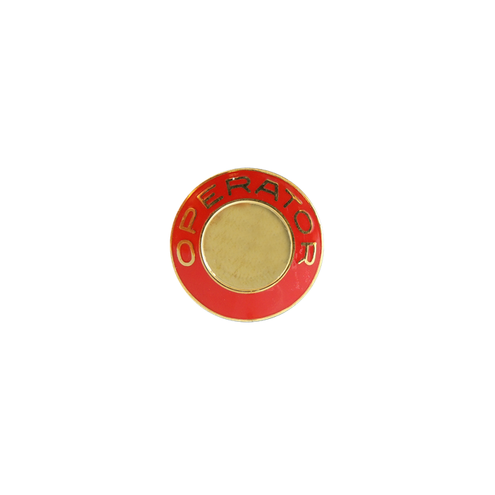 This handsome fire seal with the word Operator around the rim is a versatile piece that can be used as a lapel pin, or use it as a stunning center seal on your badge. Customize the unique piece further by adding the color of your choice around the rim and a ½” seal to the center of the disc.