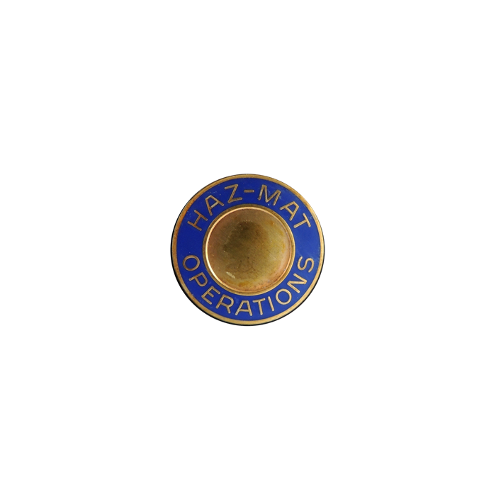 This handsome fire seal with the words Haz-Mat Operations around the rim is a versatile piece that can be used as a lapel pin, or use it as a stunning center seal on your badge. Customize the unique piece further by adding the color of your choice around the rim and a ½” seal to the center of the disc.