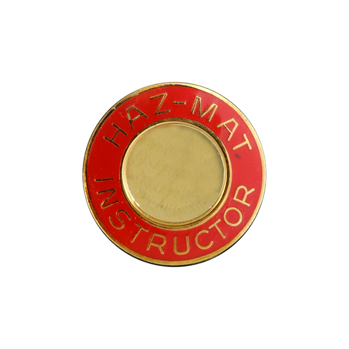 This handsome fire seal with the words Haz-Mat Instructor around the rim is a versatile piece that can be used as a lapel pin, or use it as a stunning center seal on your badge. Customize the unique piece further by adding the color of your choice around the rim and a ½” seal to the center of the disc.