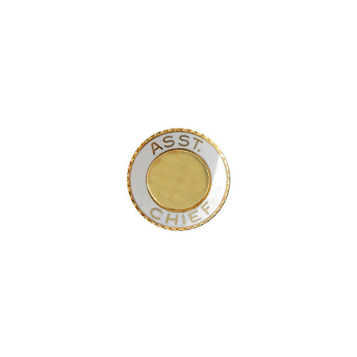 This handsome fire seal with the words Assistant Chief around the edge is a versatile piece that can be used as a lapel pin, or use it as a stunning center seal on your badge. Customize the unique piece further by adding the color of your choice around the rim and a ½” seal to the center of the disc.