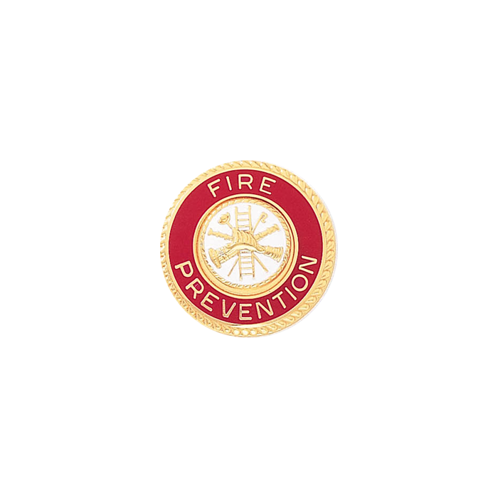 Handsome Fire Prevention seal that can take an applied ½” seal in the center. This versatile piece can be used as a lapel pin by adding two clutch back nail attachments.