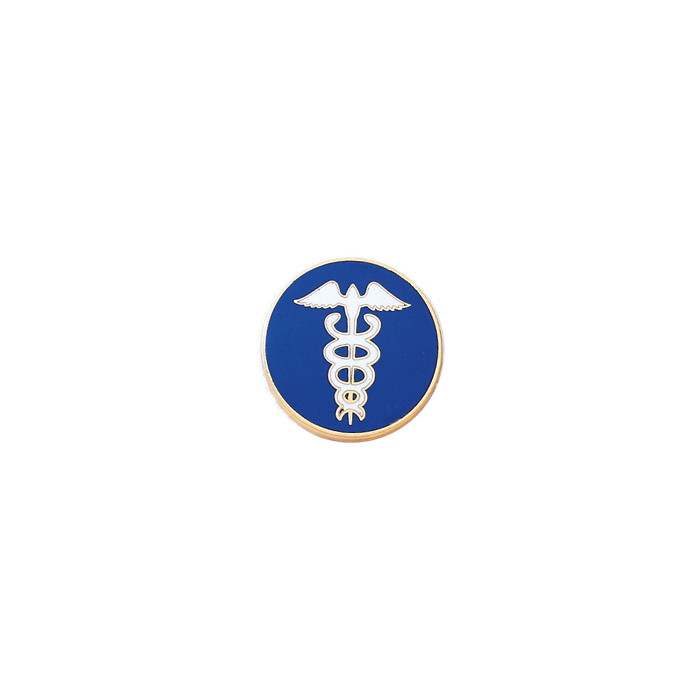 The Caduceus is the traditional symbol of Hermes featuring two snakes winding around a winged staff, and is often used as a symbol of medicine. This versatile piece can be used as a lapel pin by adding two clutch back nail attachments, or use it as a stunning center seal on your badge. The background can be the enamel color or your choice. Also available as 15/16" style A4256 and 1/2" style A4278. Minimum order quantity is 2.