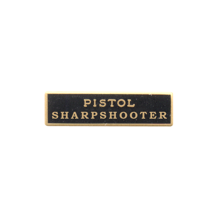 Quality Pistol Sharpshooter enamel marksmanship bar. This stunning bar can take the enamel color of your choice. The wording is in the die and cannot be changed.