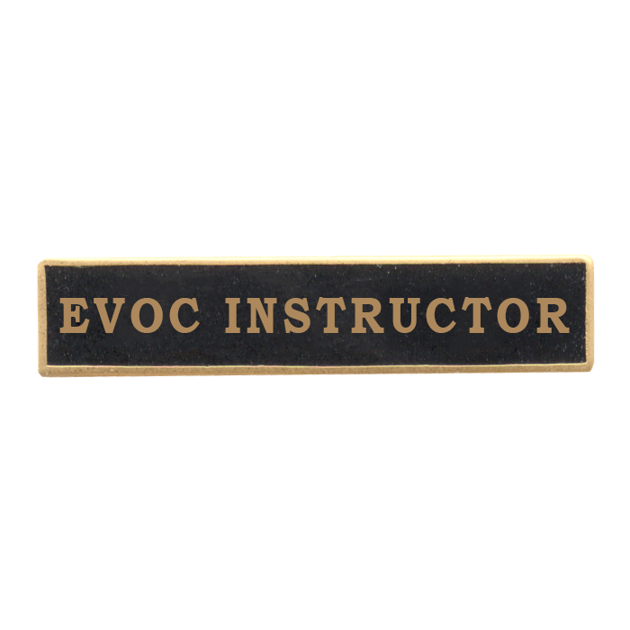 Quality EVOC Instructor enamel marksmanship bar. This stunning bar can take the enamel color of your choice. The wording is in the die and cannot be changed.