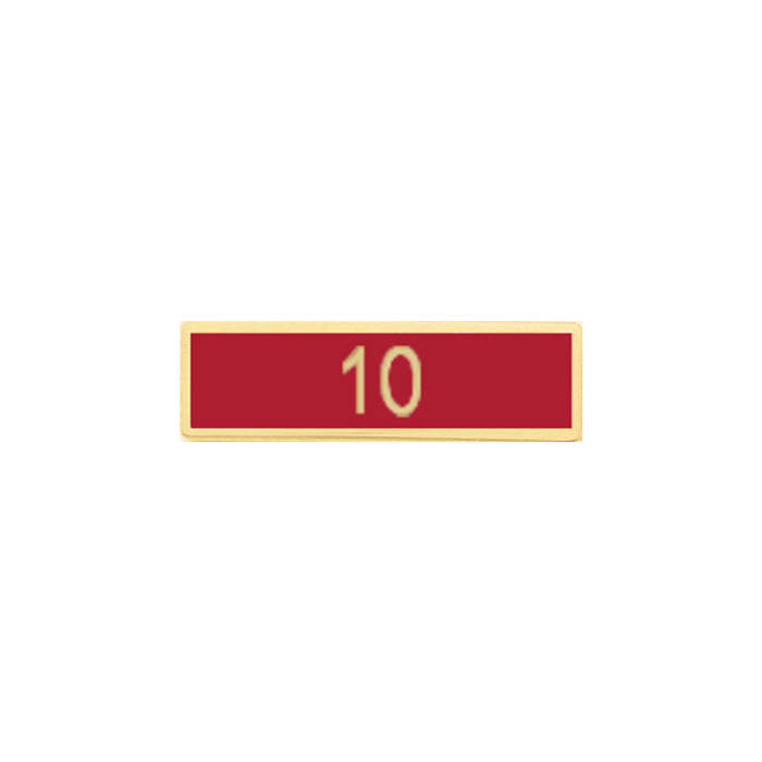 One section commendation bar with the number 10 in the center for ten years of service. The 10 is in block font. The wording / text is in the die and cannot be changed. This bar is also available with the number 15. See model A7140-AM.