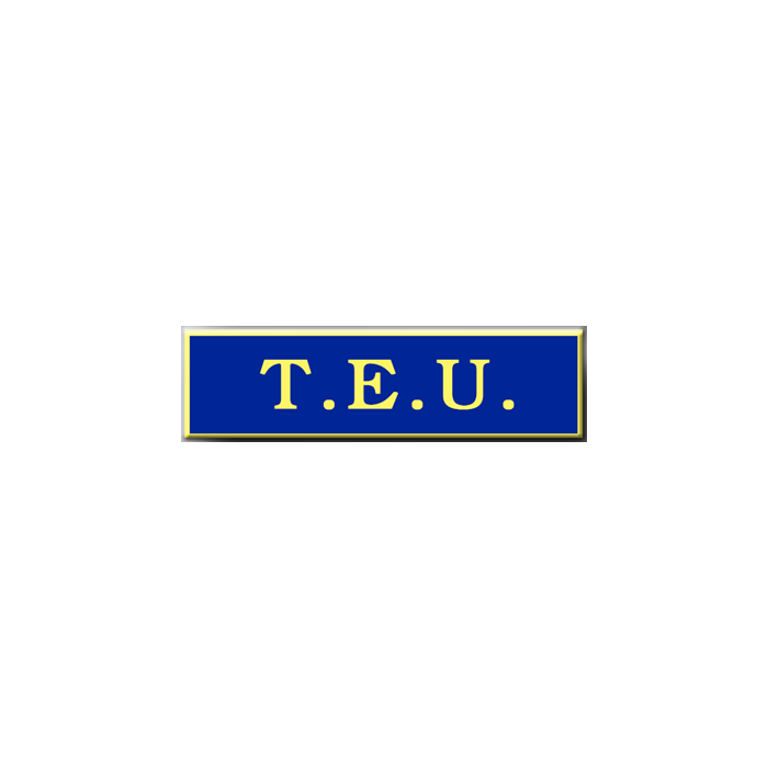 One section commendation bar with the words T.E.U. in the center. The text is in the die and cannot be changed.