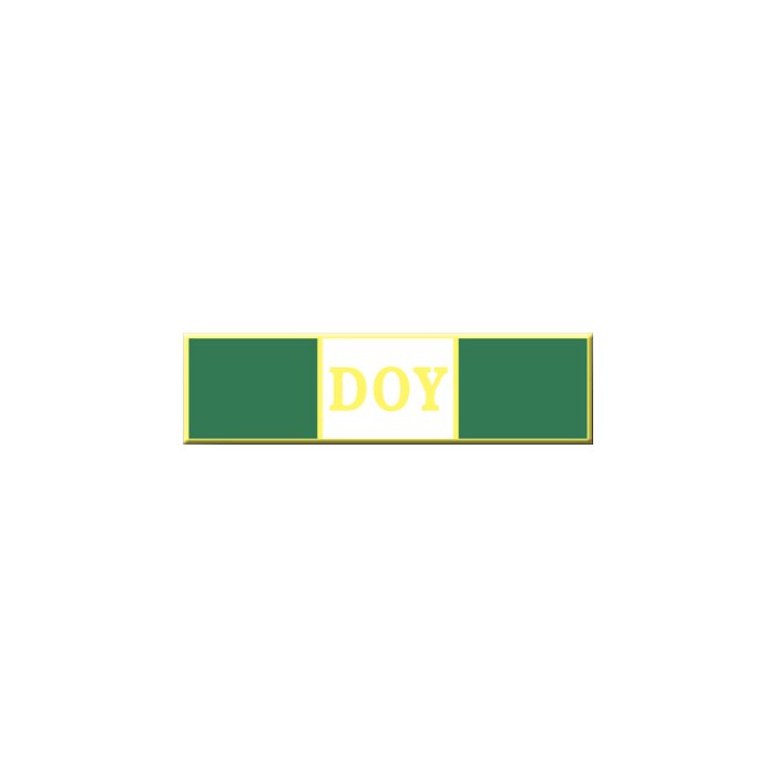 Three section commendation bar with the word DOY in the center. The text is in the die and cannot be changed.