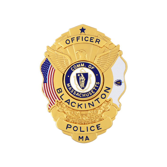 Few badges rival this one in beauty and genius in design! With an eagle emerging from behind the seal, custom flags can be placed on both sides of the seal, and best of all no custom die! Shown here with the American Flag and Massachusetts State Flag... B3870-PRT is a marvel!