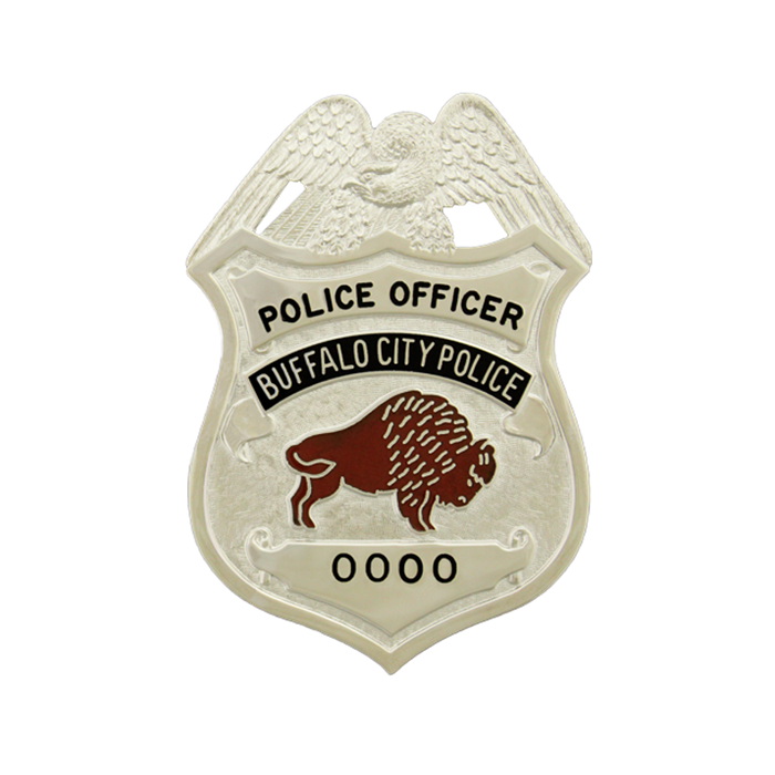 This vibrant shield badge is worn by the Buffalo City Police in New York! This shield features a buffalo in the center of the badge.