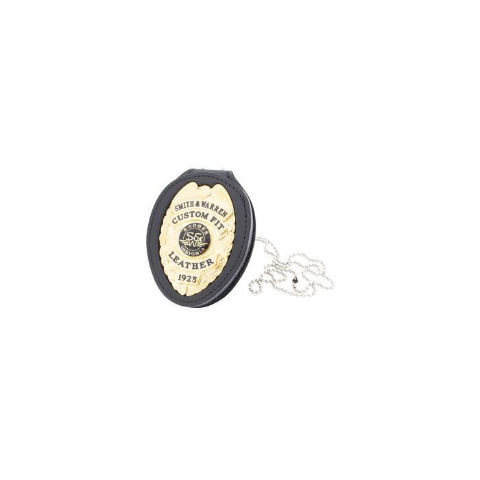 This neck chain badge holder is made from genuine duty leather. It includes a 30" beaded chain with a hook & loop closure at the bottom. It is custom-cut to fit any Smith & Warren badge. This holder does not include a heavy-duty steel belt clip. Proudly Made in the USA.