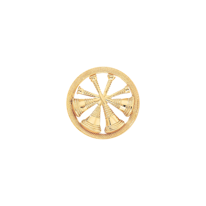 This gleaming cap badge for a Deputy Chief features four crossed horns with a hollow background and sophisticated rope-style rim wreath!