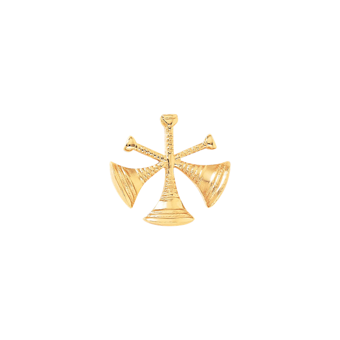 This gleaming cap badge for an Assistant Chief features three crossed horns perfectly trimmed to stand without a background. Watch this piece POP when attached to a cap or collar!