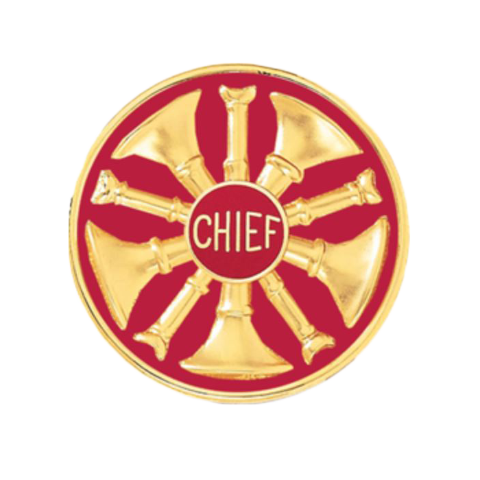 This intricate cap badge for a Chief is very similar to our A2811, featuring five crossed horns yet with a thinner and polished rim plus a simplified horn design! Additionally, this product features your choice of enamel background coloring!