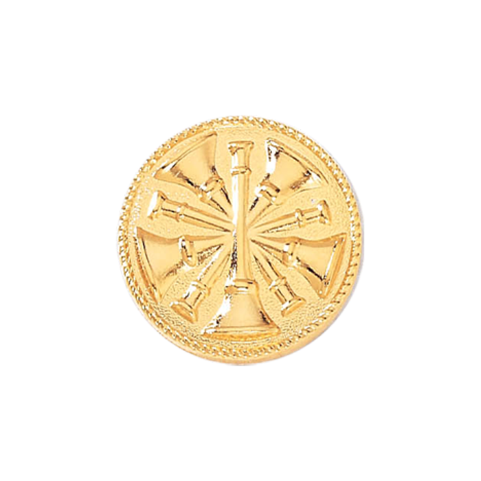 Plain seal featuring five crossed bugles with a decorative rope border. This handsome seal can be used as a lapel pin, or use it as a stunning center seal on your badge. Minimum order quantity is 2.
