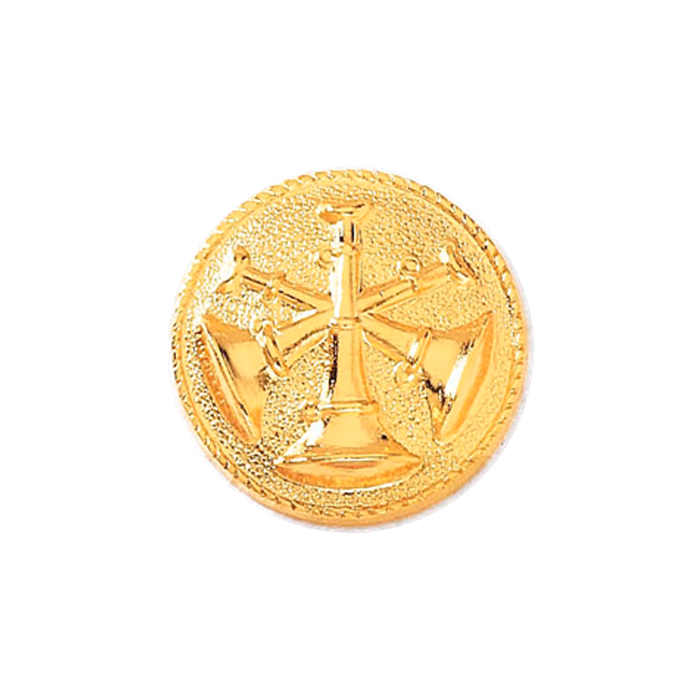 Plain seal featuring three crossed bugles with a decorative rope border. This handsome insignia can be used as a lapel pin, or use it as a stunning center seal on your badge. Minimum order quantity is 2.