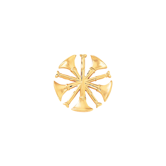 This noble cap badge was inspired by our A2857, featuring the same precision-polished five crossed horns but with no accompanying rim or border. This one will really POP in presentation on a uniform!