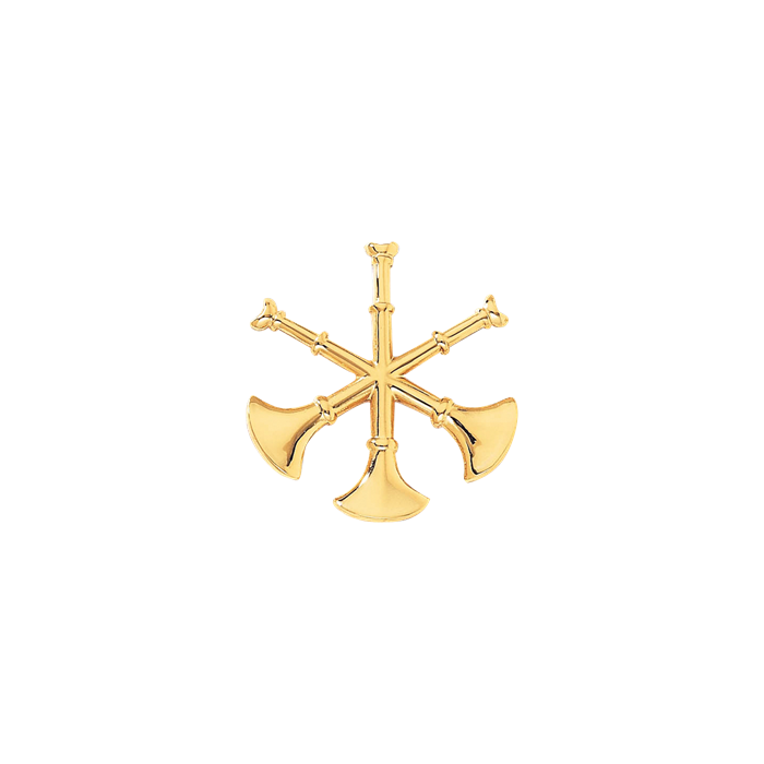 This noble cap badge was inspired by our A2858, featuring the same precision-polished three crossed horns but with no accompanying rim or border. This one will really POP in presentation on a uniform!