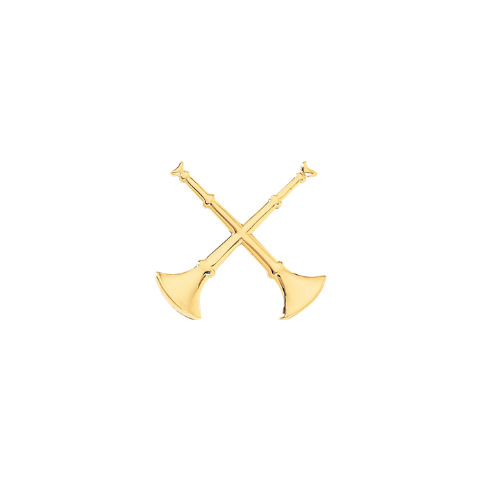 This noble cap badge was inspired by our A2859, featuring the same precision-polished two crossed horns but with no accompanying rim or border. Two crossed bugles typically denotes the fire rank of Battalion or District Chief, or Captain.