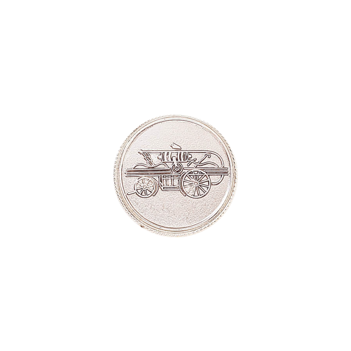 Plain fire seal featuring an old fashioned pumper truck with a decorative border. This handsome seal can be used as a lapel pin, or use it as a stunning center seal on your badge. Minimum order quantity is 2.