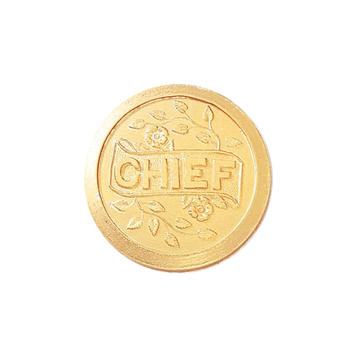 This handsome Chief seal can be used as a lapel pin by adding two clutch back nail attachments, or use it as a stunning center seal on your badge. Minimum order quantity is 2.