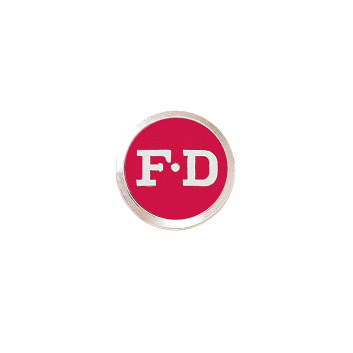 This Fire Department seal with the letters FD is a versatile piece that can be used as a lapel pin, or use it as a stunning center seal on your badge. The seal can come as pictured here or with an enamel background in the color of your choice. Also available as 11/16" style A4543. Minimum order quantity is 2.