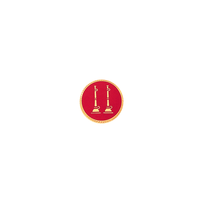 Handsome 2 bugle seal with rope edge. The background can be the enamel color or your choice. Two vertical horns typically denotes the fire rank of Captain. Also available in 11/16" A2998 and 15/16" A2997. Minimum order quantity is 2.