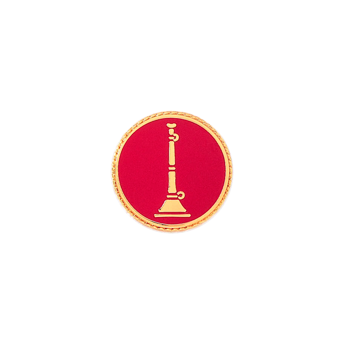 Handsome single bugle seal with rope edge. This beautiful seal can be used as a lapel pin by adding two clutch back nail attachments Quantity Style# F9 , or use it as a stunning center seal on your badge. The background can be the enamel color or your choice. The single horn typically denotes the fire rank of Lieutenant. Also available in 11/16" A3026 and 1/2" A3027. Minimum order quantity is 2.