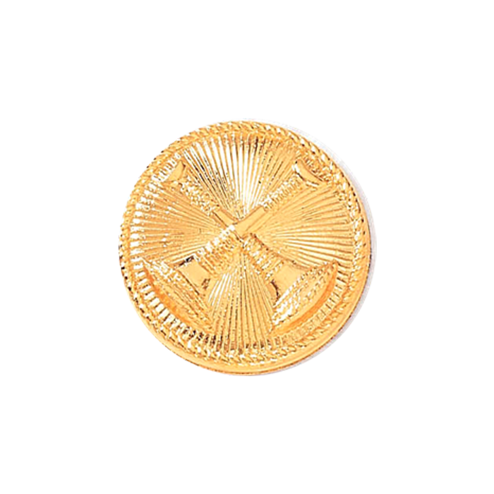 Plain seal featuring two crossed bugles atop rays with a decorative rope border. This handsome seal can be used as a lapel pin, or use it as a stunning center seal on your badge. Minimum order quantity is 2.