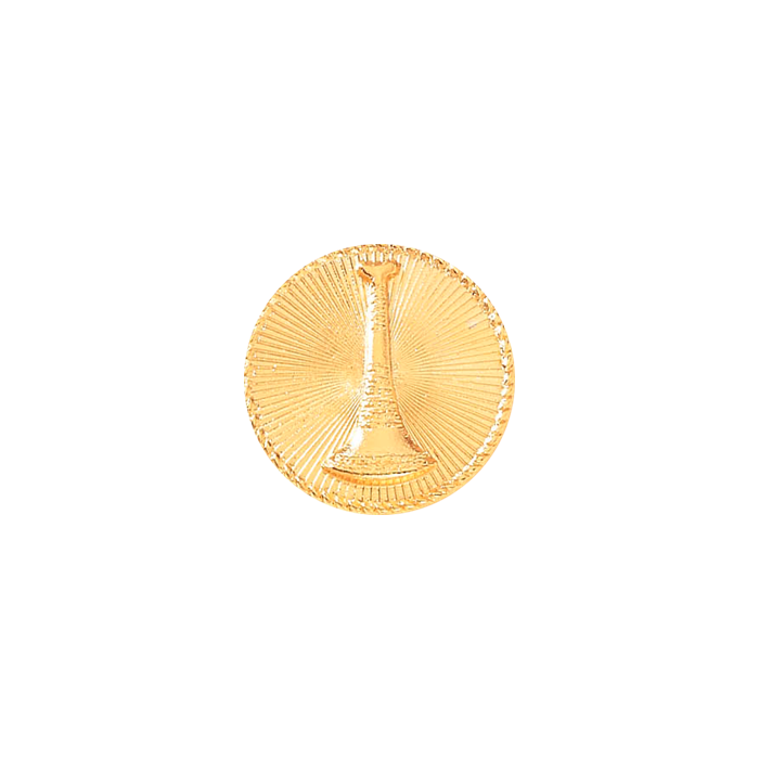 Handsome bugle seal with rays and a rope edge. This beautiful seal can be used as a lapel pin by adding two clutch back nail attachments, or use it as a stunning center seal on your badge. A single horn typically denotes the fire rank of Lieutenant. Minimum order quantity is 2.