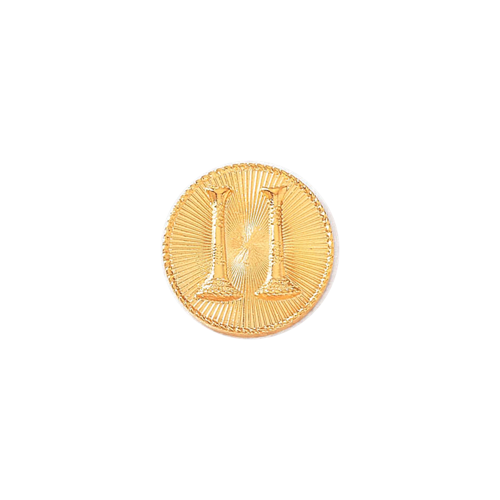 Handsome 2 bugle seal with rope edge. This beautiful seal can be used as a lapel pin by adding two clutch back nail attachments, or use it as a stunning center seal on your badge. Two vertical horns typically denotes the fire rank of Captain. Minimum order quantity is 2.
