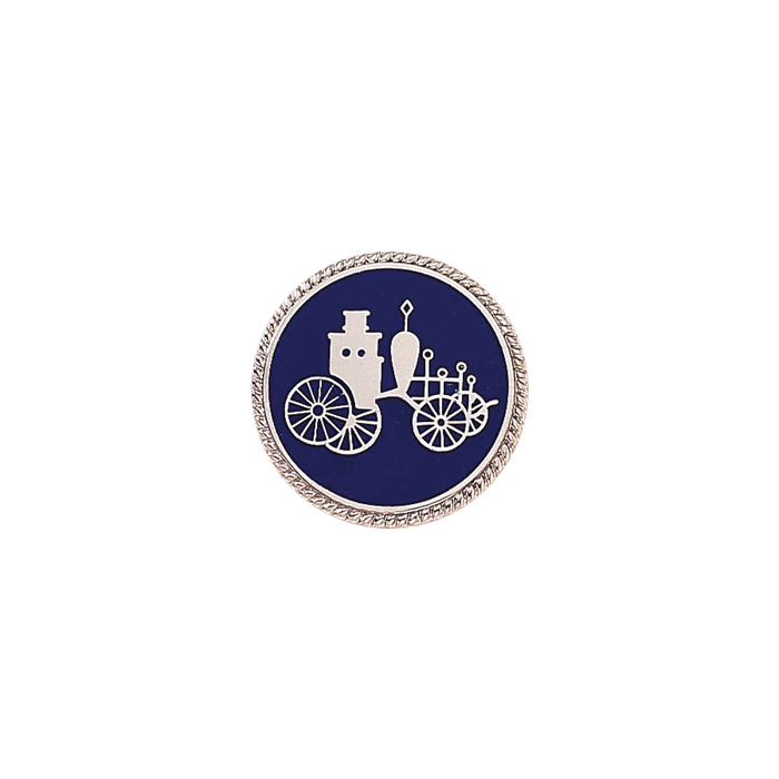 This classic round cap badge includes the timeless image of a vintage pumper carriage! Also includes an enamel-colored background of your choice! Minimum order quantity is 2.