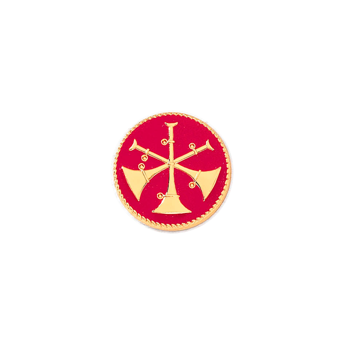 Handsome three crossed bugles with a rope edge. This versatile piece can be used as a lapel pin, or use it as a stunning center seal on your badge. The horns are raised in the flowed enamel background color of your choice. Three crossed horns typically denotes the fire rank of Division or Assistant Chief. Also available in 11/16" A7206, 5/8" A6974, 1/2" A6975, and 5/16" A6976. Minimum order quantity is 2.