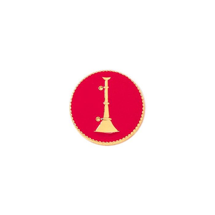 Handsome fire seal with raised bugle and a rope edge. This versatile piece can be used as a lapel pin by adding two clutch back nail attachments, or use it as a stunning center seal on your badge. The background can be the raised enamel color or your choice. A single horn typically denotes the fire rank of Lieutenant. This seal is available for quick shipping. See model J199. Also available in 11/16" A7209 and 5/8" A6986. Minimum order quantity is 2.